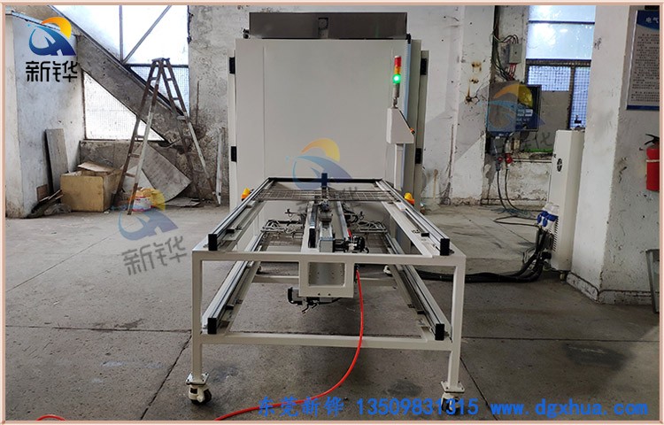 出料動作:夾爪把鋼網從烤箱取出,吸盤吸產品(吸盤位置可調),托盤移出,吸盤松開,產品掉到收料箱,后鋼盤移進烤箱;